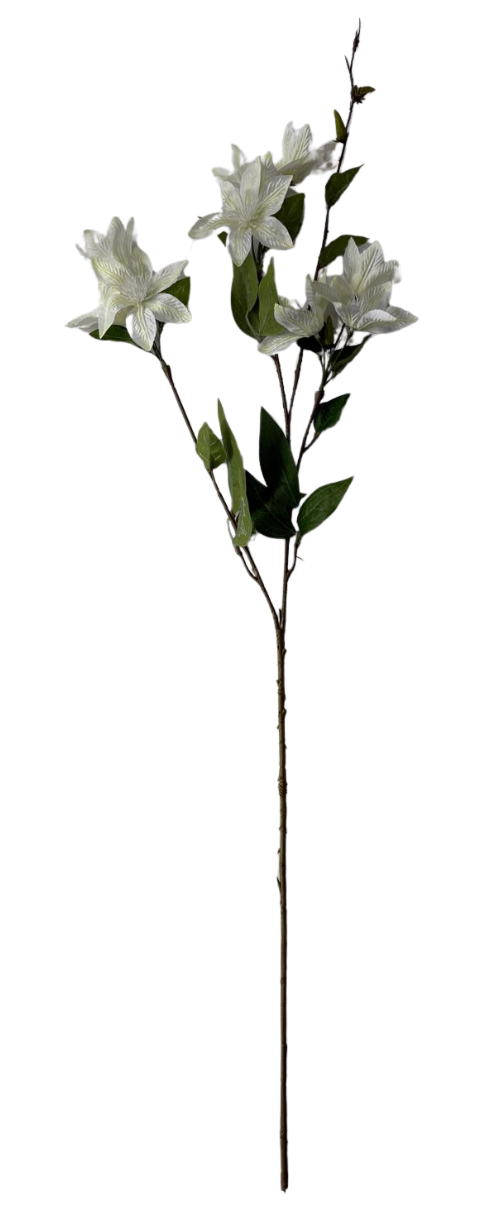 Delikatny i efektowny sztuczny Clematis w białym kolorze, osadzony na długiej łodydze o wysokości 86 cm. Kwiat o subtelnych płatkach i realistycznym wyglądzie, idealny do bukietów, dekoracji ślubnych oraz kompozycji florystycznych. Stylowy akcent do eleganckich wnętrz i aranżacji sezonowych.
