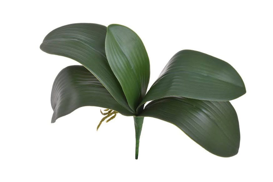 Realistyczne, sztuczne liście storczyka o długości 36 cm, doskonałe do tworzenia kompozycji kwiatowych i dekoracji. Stanowią elegancką bazę do aranżacji w doniczkach, wazonach czy stroikach, dodając im naturalnego wyglądu i świeżości.