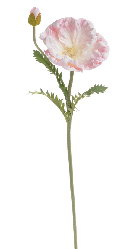 Delikatna dekoracja w postaci sztucznego maku z piankowym kwiatem na zielonej łodydze. Jasnoróżowy odcień nadaje mu subtelny, romantyczny wygląd. Idealny do wiosennych i letnich kompozycji florystycznych, stroików lub jako pojedynczy akcent w wazonie. Nie wymaga pielęgnacji.