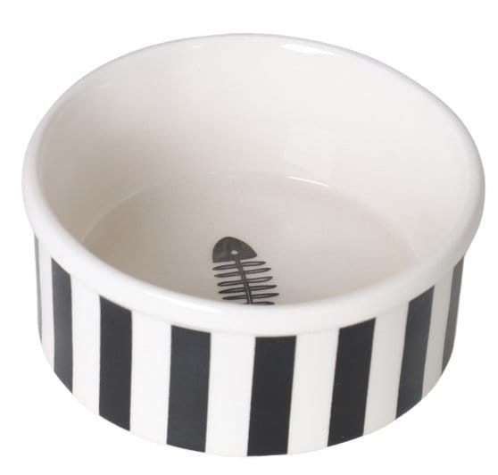MISKA DLA KOTA BIAŁ-CZAR PASKI 12X12X15CM