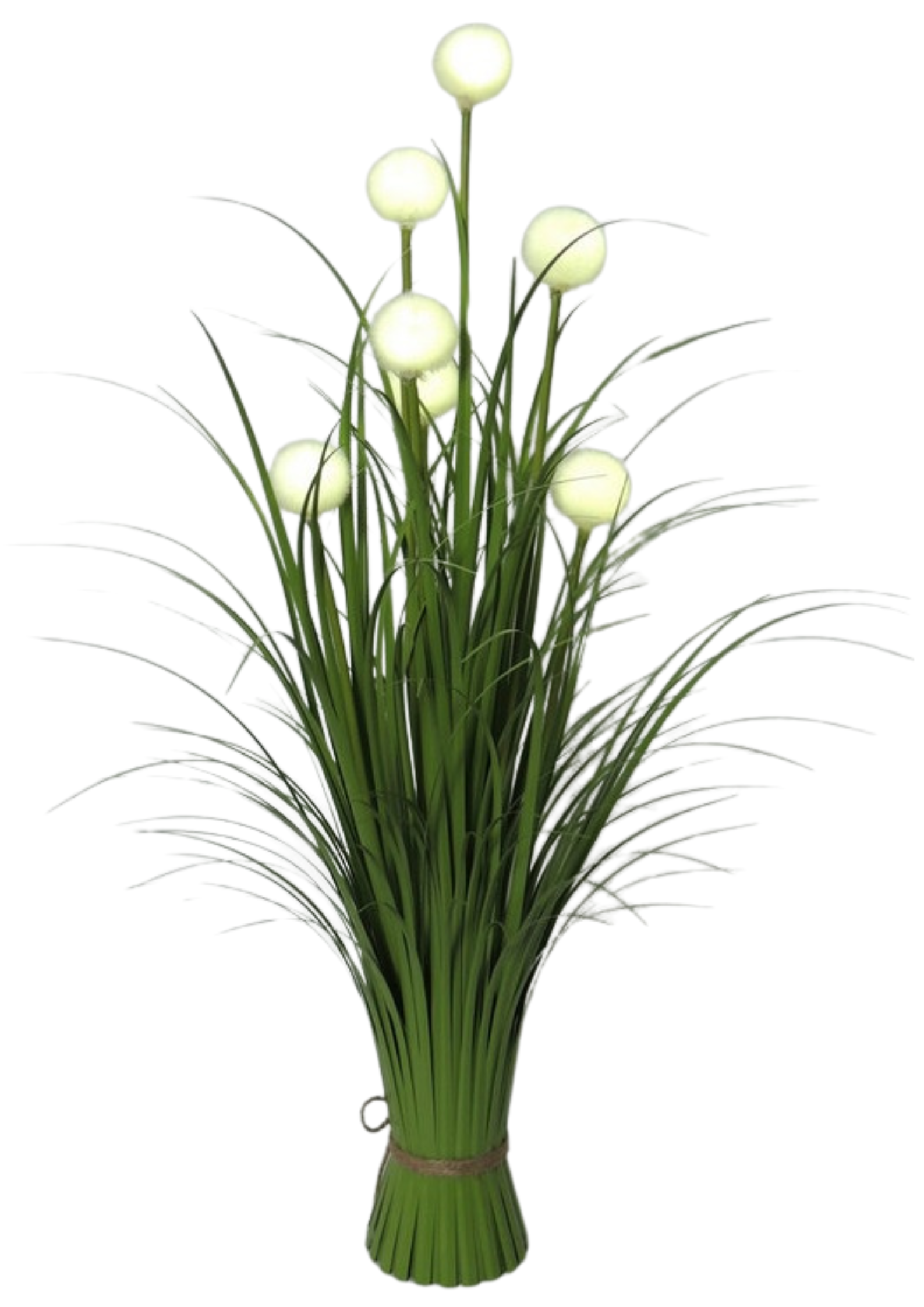 Dekoracyjna trawa sztuczna ozdobiona delikatnymi kuleczkami LED na czubkach źdźbeł, które tworzą subtelny, migoczący efekt świetlny. Idealna do wnętrz i aranżacji dekoracyjnych, dodaje przytulnej atmosfery oraz naturalnego uroku. Energooszczędne diody LED podkreślają każdy detal trawy, tworząc klimatyczną dekorację na każdą okazję.